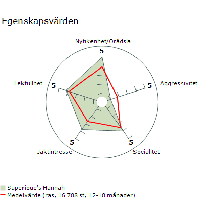 I sina kullar har Hannah alltid lämnat individer som utmärker sig såväl inom arbetsprov som utställning och hennes avkommor har en stabil mentalitet.